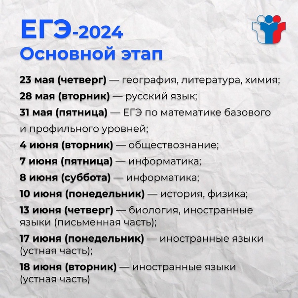 Минпросвещения России подготовило проекты расписания государственных экзаменов в 2024-м году, они опубликованы на федеральном портале проектов нормативных правовых актов.