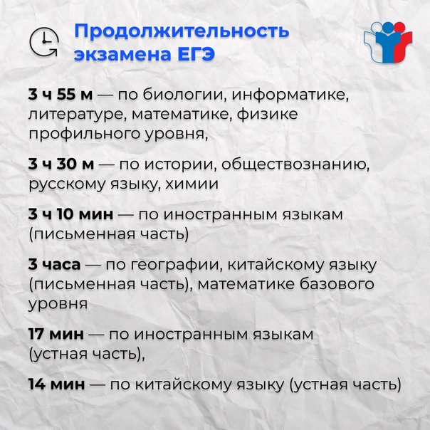 ЕГЭ по всем учебным предметам начинается в 10:00 по местному времени.