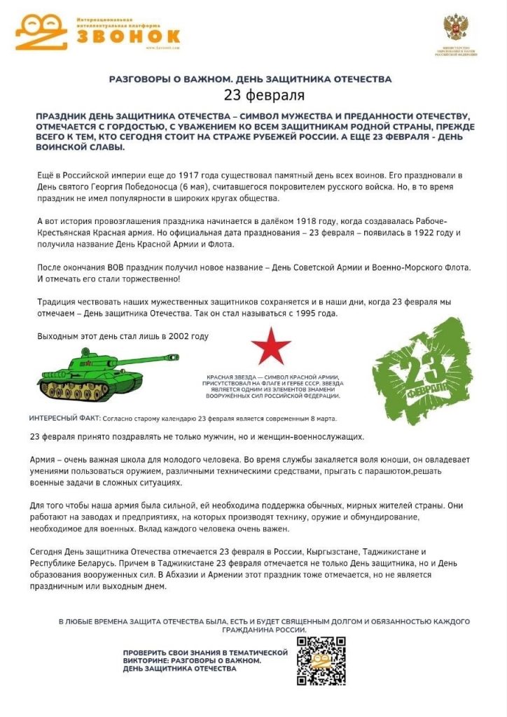 После поднятия флага в классах прошли еженедельные занятия «Разговоры о важном» на тему «День защитника Отечества».