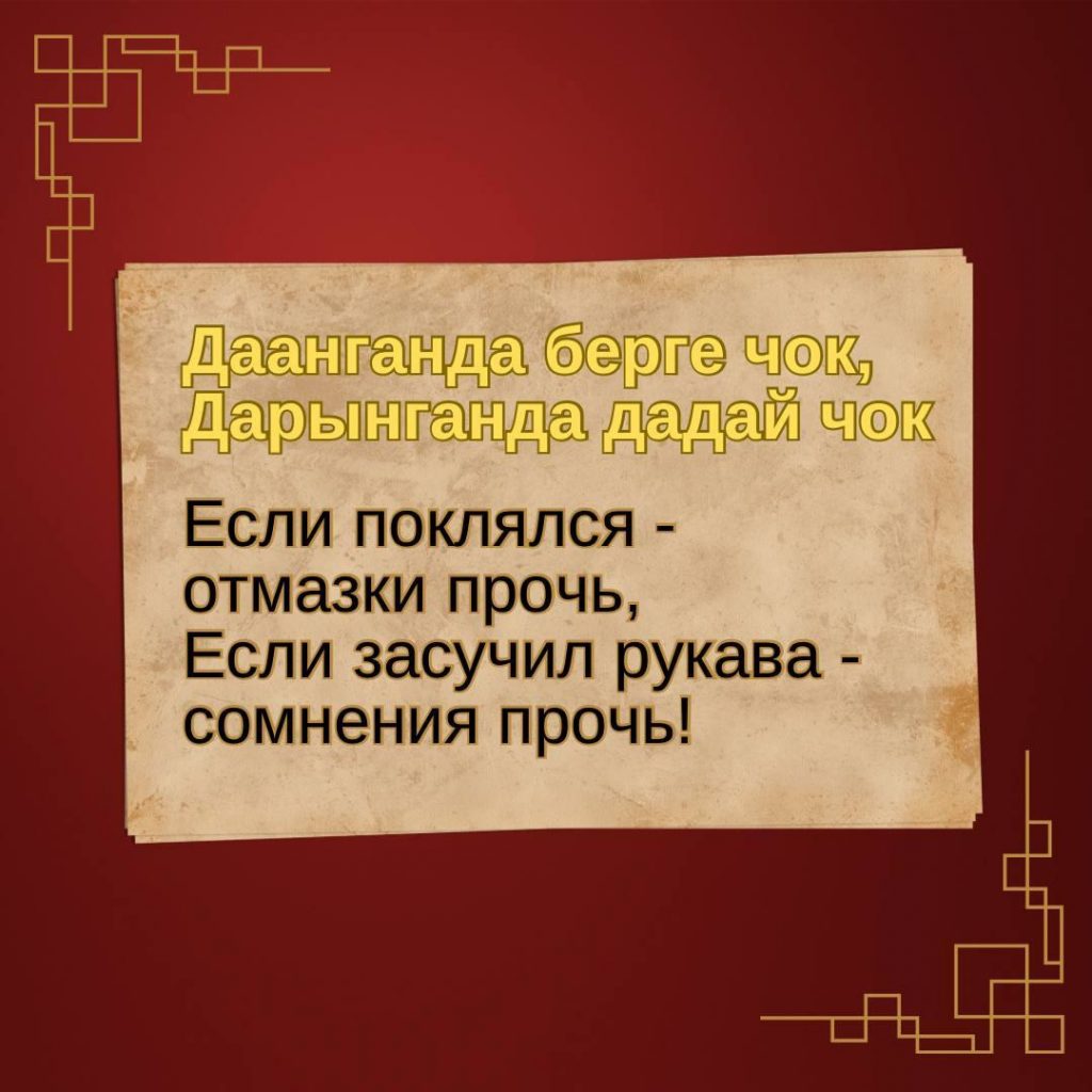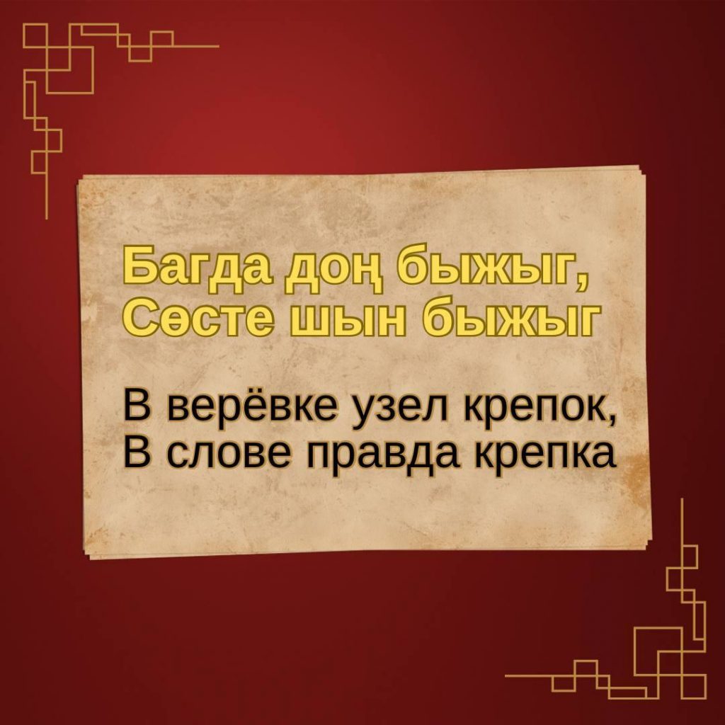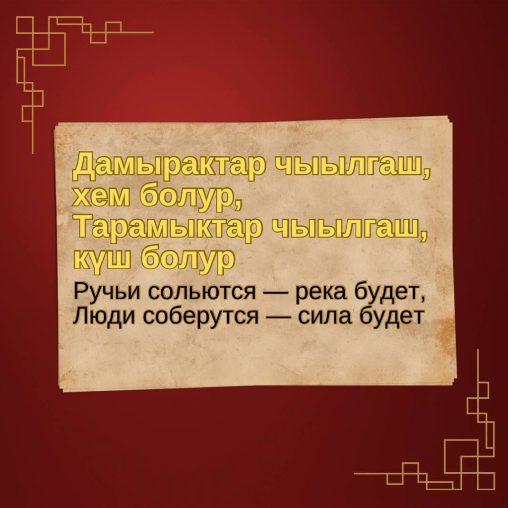 За свою историю тувинский народ создал большое количество мудрых пословиц и поговорок о смелости, отваге и силе духа. Меткие и образные, эти маленькие жемчужины народной мудрости веками передавались от одного поколения другому, сохраняя глубину мысли.