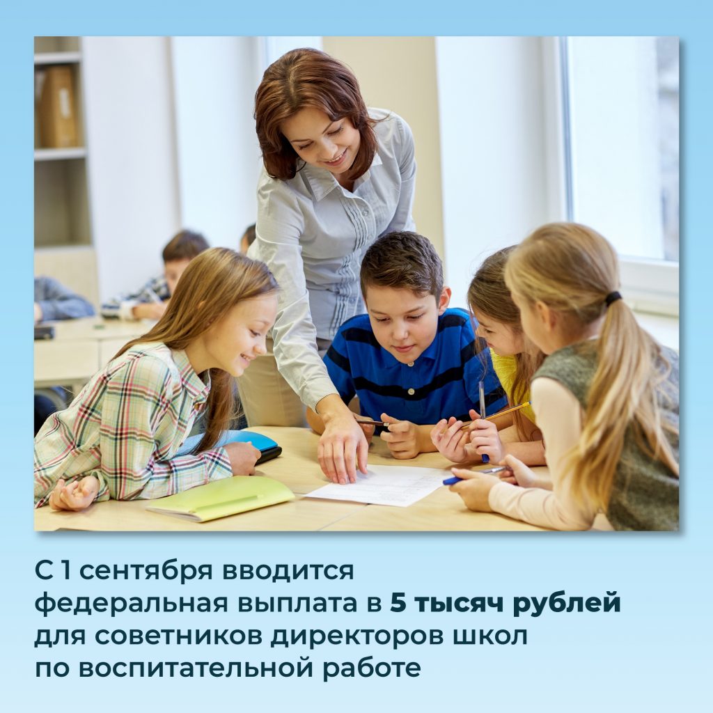 Без рубрики Новости 01.03.2024 / С 1 сентября 2024 года советники директоров по воспитанию в школах и колледжах будут получать дополнительно по 5 тысяч рублей! Какие еще выплаты были анонсированы на послании президента Владимира Путина Федеральному собранию — в карточках.
