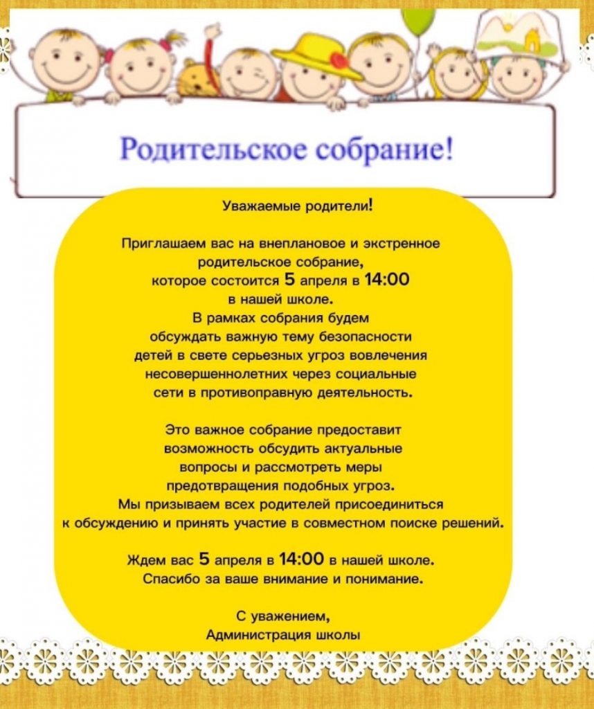 Экстренное собрание родителей школы