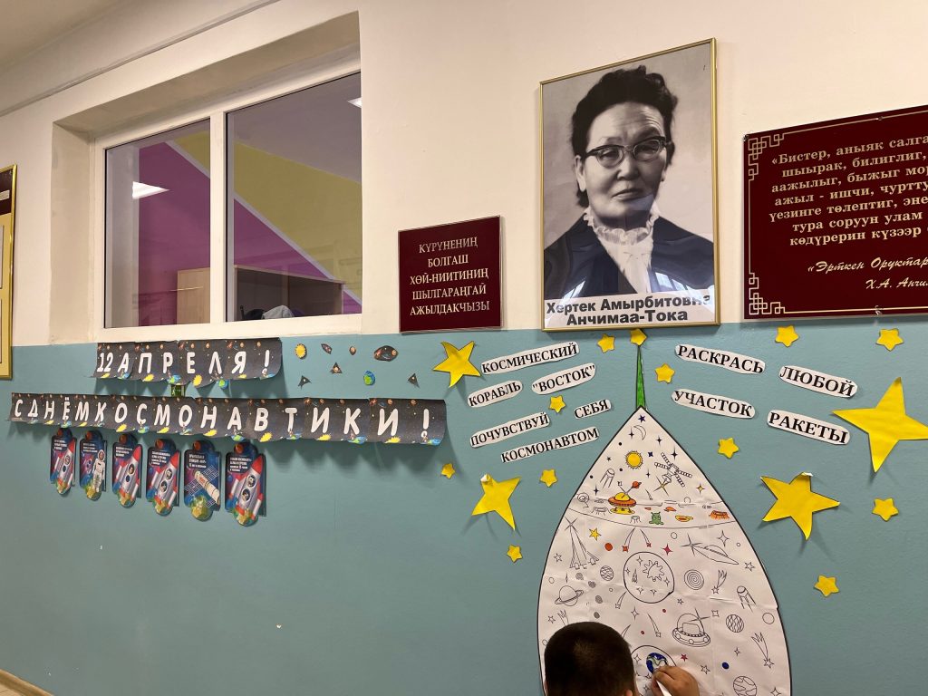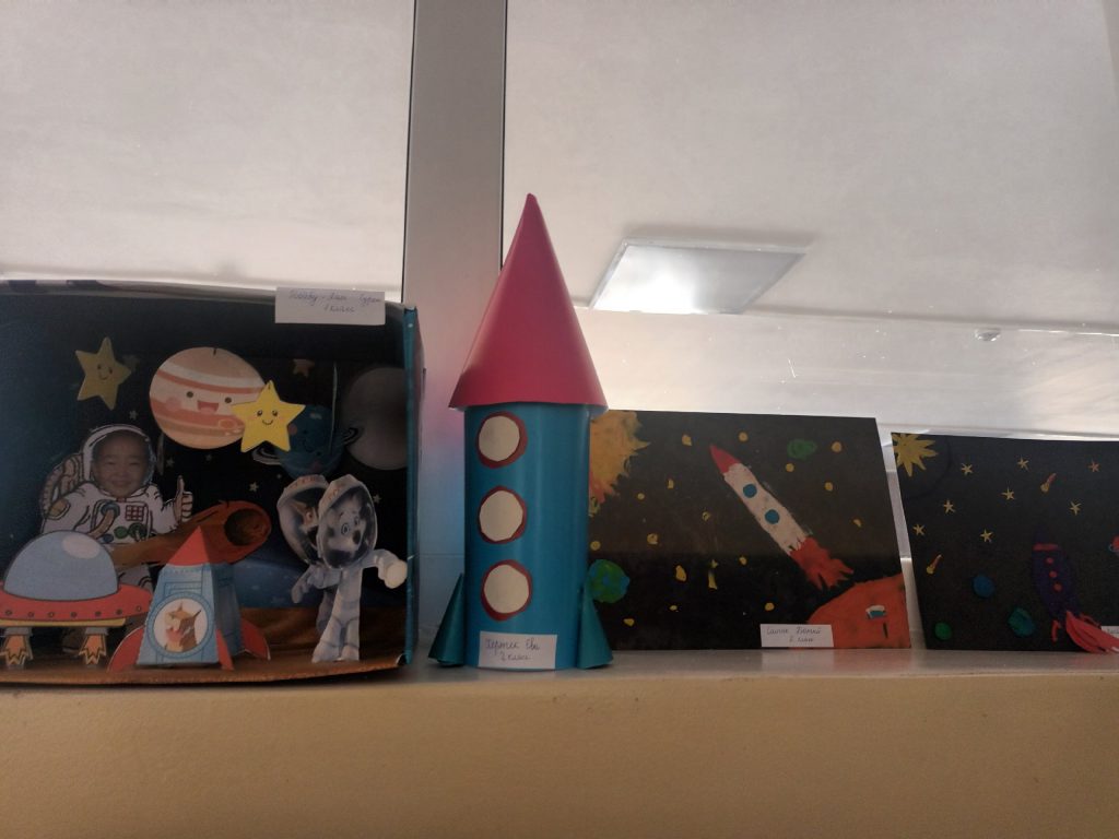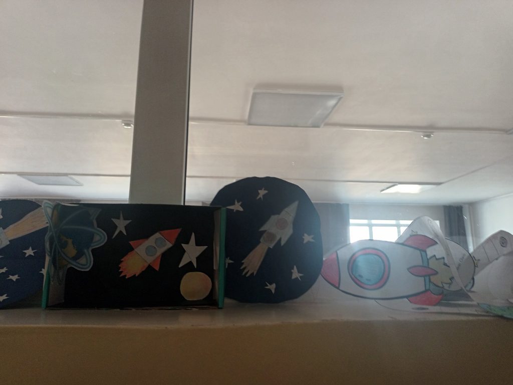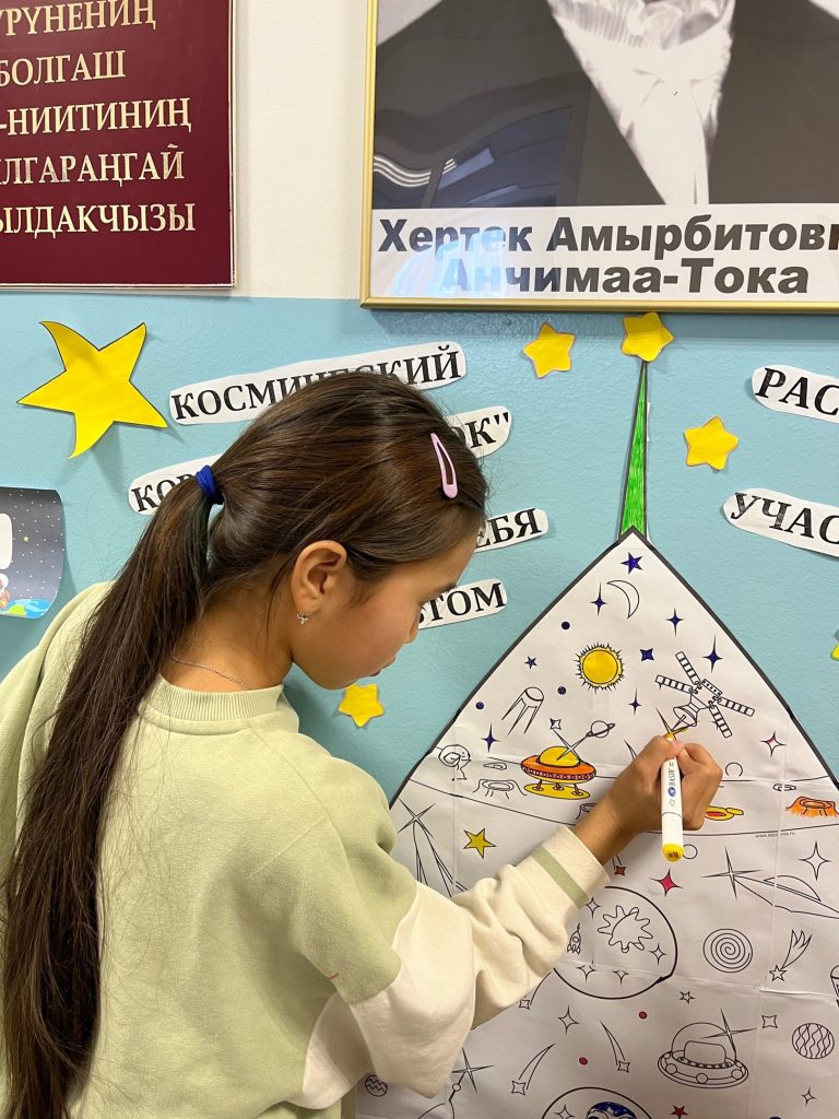 После игры ученики раскрасили желаемый участок в большой раскраске-ракете и выставили работы 2,3 классы