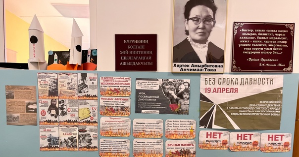 Советник директора по воспитанию и взаимодействию с ДОО, Иргит С.Б., создала в школе информационный стенд, посвященный Дню единства действий в память о геноциде советского народа нацистами и их пособниками в годы Великой Отечественной войны.