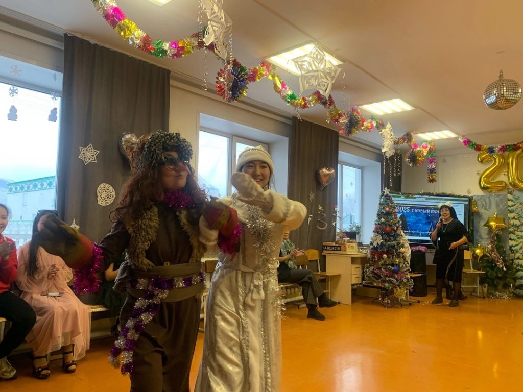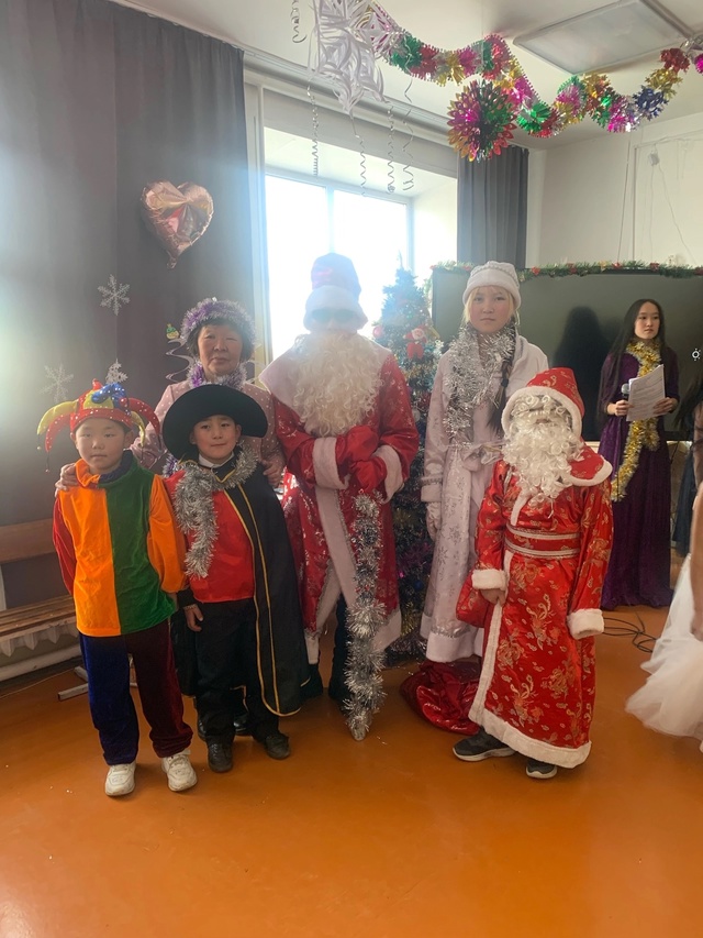 По сценарию мероприятия были задействованы следующие персонажи: В роли Деда Мороза, Снегурочки и ведущие учащиеся 9,10,11 классов и в роли представления Баба-яги, Мажаалай, Шалыраашпай, Кулакпан, Моортай, Эникпен, Улу, Змея играли учителя.