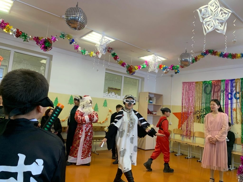 Общешкольное воспитательное культурно-массовое мероприятие, посвященное Новому году, проводилось 27 декабря по теме «Хорошо, что каждый год к нам приходит Новый год». Мероприятие, посвященному Новому году, прошло по сценарию. Организаторами мероприятия были учителя и школьники.