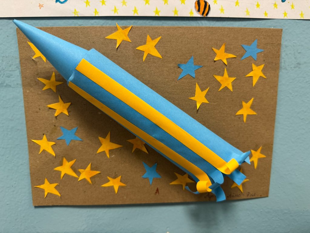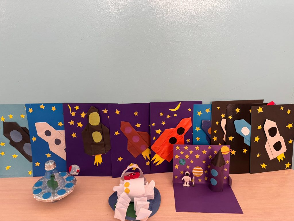 Работы получились яркие и оригинальные. Ракеты, космические корабли, неопознанные летающие объекты, планеты солнечной системы, космонавты… — каждая работа уникальна!