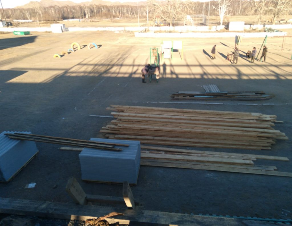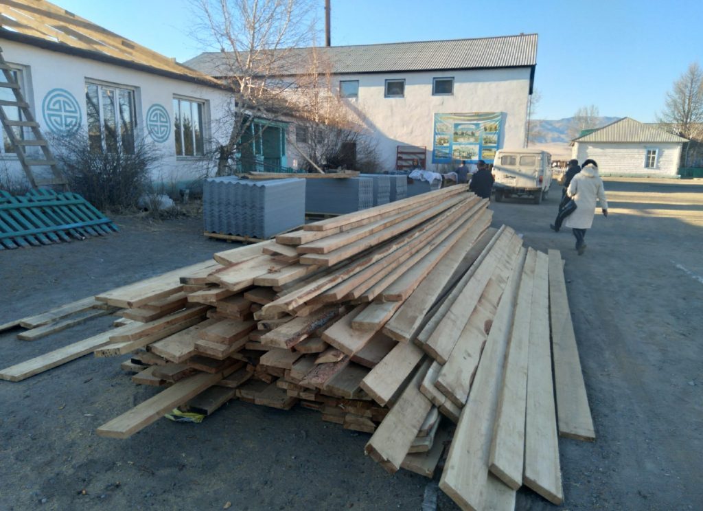 На данный момент индивидуальным предпринимателем Хомушку Хемчик Чылбак-ооловичем, выигравшим аукцион, завезены строительные материалы первичных работ: пиломатериалы, шифер.