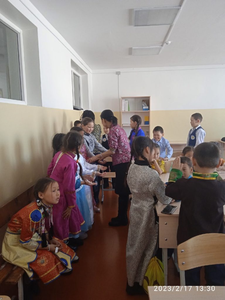 Мөөрейге өөреникчилер дыка идепкейлиг киришкеннер. Аас чогаалының дүрген-чугаа, узун-тыныш, үлегер домак, тывызыктар, кожамык, Шагаа йөрээлин салыры деп хевирлеринге изиг чижиишкинниң түңнелинде шыырак белеткели-биле эге школаның 4-кү клазы шылгарап үнген. 2-ги черге 1-ги класс, 3-күзүнге 2 дугаар класс төлептиг болганнар.