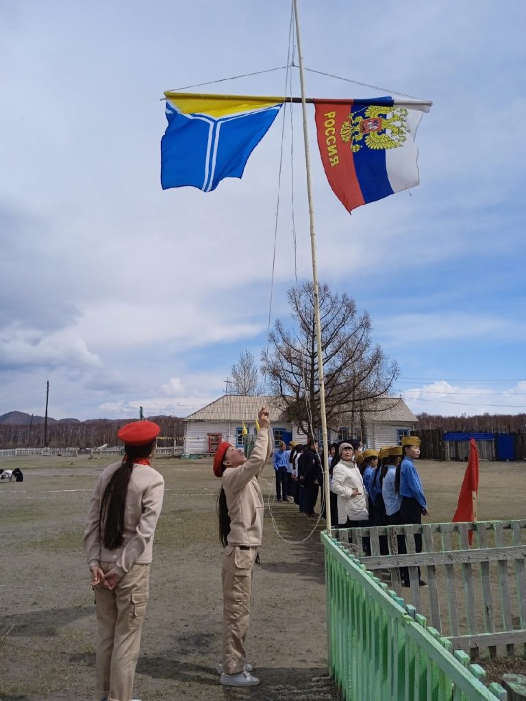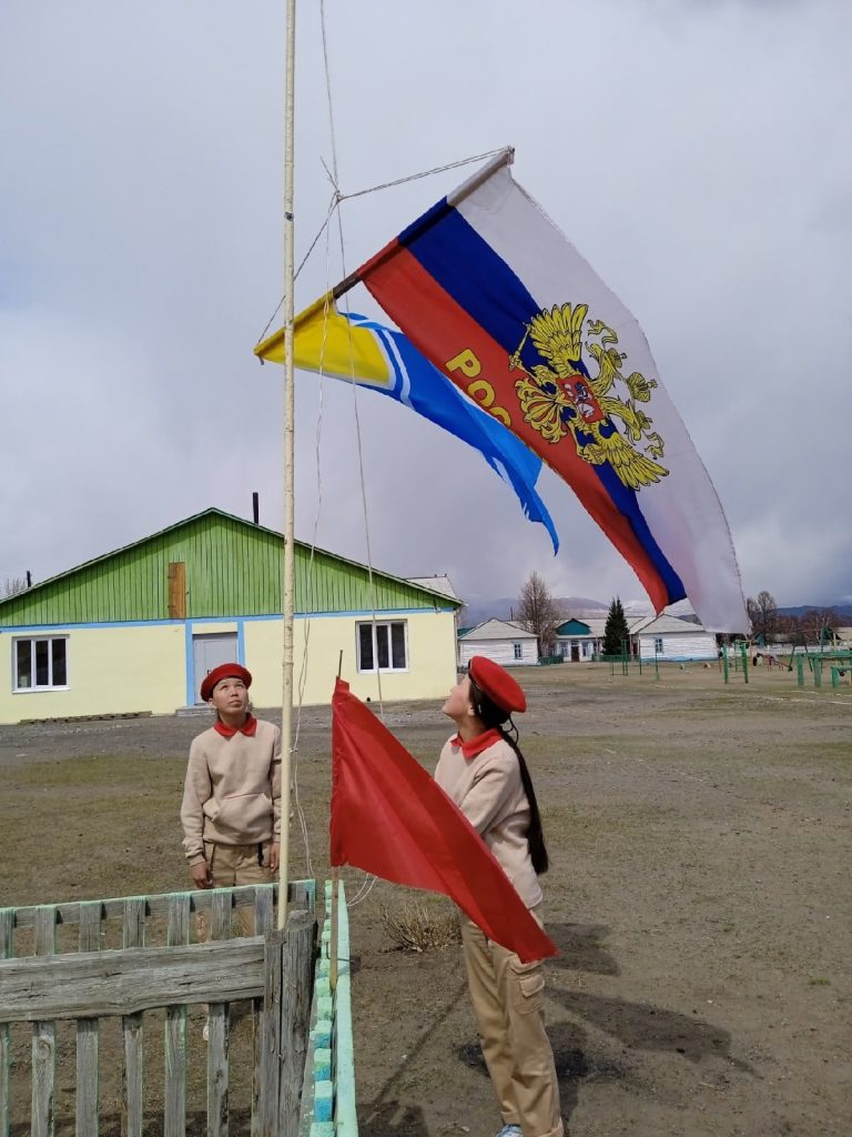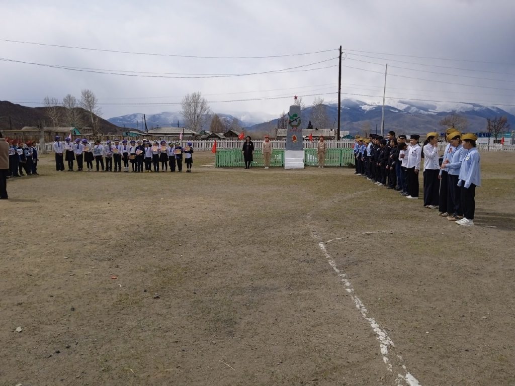 Сегодня, 4 мая 2023 года в нашей школе состоялся торжественная линейка с поднятием государственного флага Российской Федерации и Республики Тыва учениками класса «Юнармия» посвящённой 78 годовщине Победы в Великой Отечественной войне и памяти павших героев, а также героев погибших в специальной военной операции на Украине. Во время поднятия государственных флагов учащиеся исполняли также гимн России и Республики. В конце линейки дети возложили цветы и венок в дань памяти и уважения всём бойцам ВОВ и СВО. Общий охват линейки составил 97 обучающиеся, есть отсутствующие по уважительной причине связи с участием в кожууной спартакиаде Бай-Тайгинского кожууна.