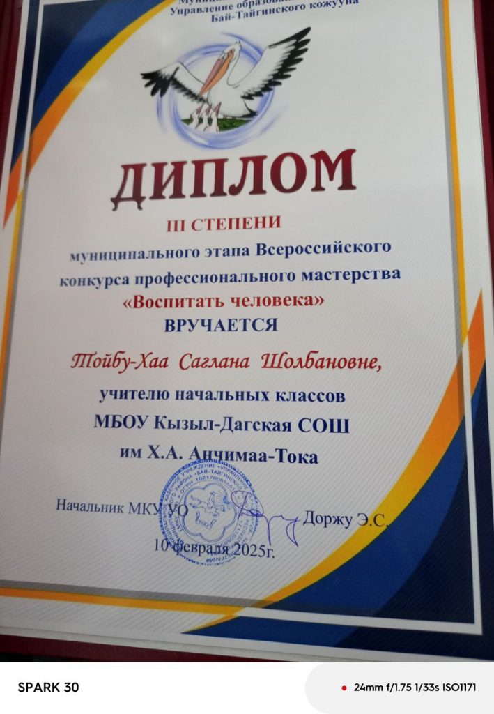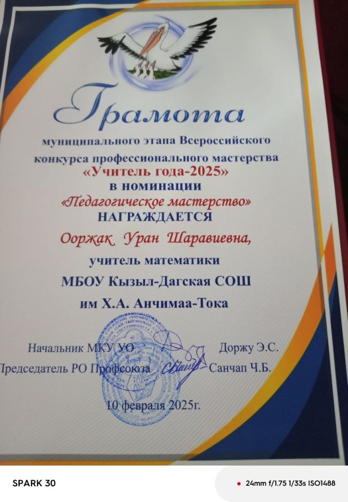 В итоге Тойбу-Хаа С.Ш., учитель начальных классов, награждена Дипломом 3 степени муниципального этапа Всероссийского конкуса профессионального мастерства «Воспитать человека-2025». Ооржак Уран Шаравииевна учитель математики, стала номинантом «Педагогическое мастерство» в конкурсе «Учитель года-2025»