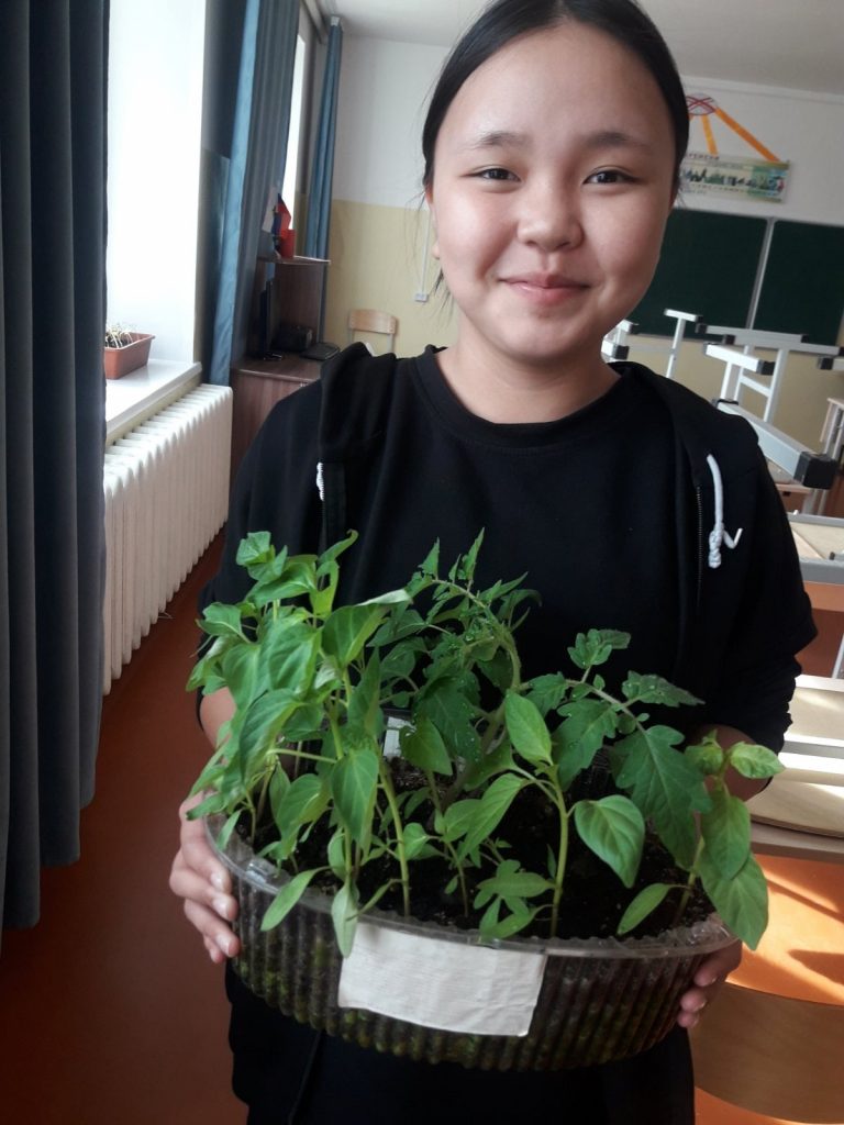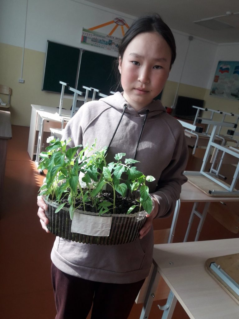 Практическое занятие с мастером производственного обучения Биче-оол Р. Б с учащимися средних классов. Во время занятия на практике девочкам показали как правильно рассаживать рассаду. От пройденного практического занятия дети получили новые знания, которые летом будут работать на летнем оздоровительном лагере «ОКРУГ».