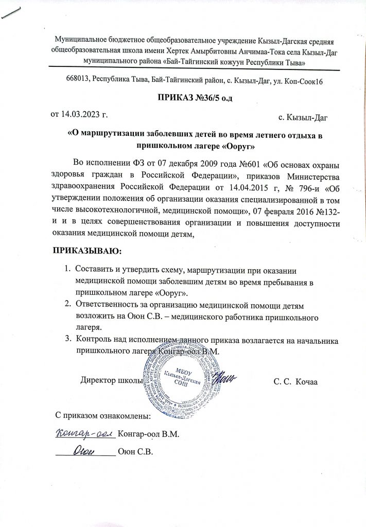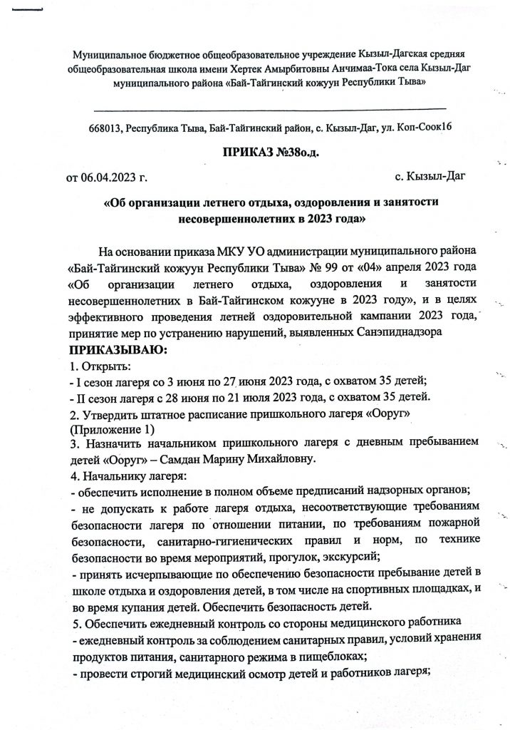 - Приказ МОиН РТ №683-д от 30.07.2020 «О проведении летней оздоровительной кампании 2020 года в Республике Тыва»