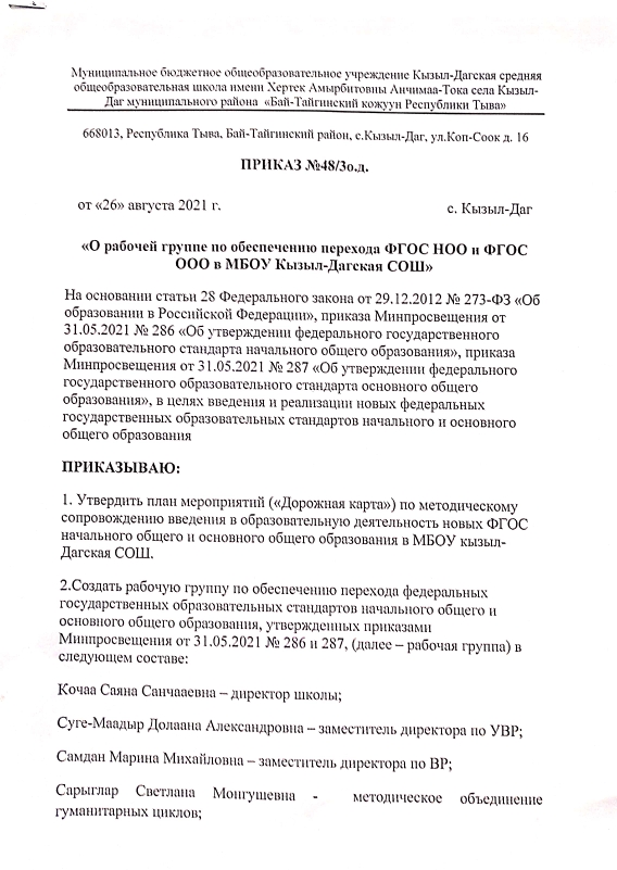 Министерства образования Республики Тыва Приказ № 165-д от 17.02.2023г.